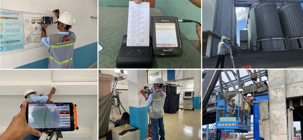 - Kiểm tra kích thước hình học các cấu kiện, đo vẽ mặt bằng tổng thể công trình.